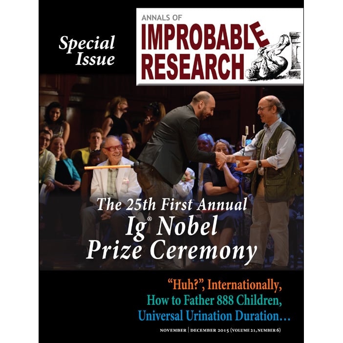 AIR Vol. 21, Issue 6$8$8https://schema.org/InStockusdImprobable Research™Improbable Research™ Nov./Dec. 2015Topics in this issue include... The 2015 Ig Nobel prize winners The 24-7 Lectures The Libretto of "The Best Life" Buy thisSize9.43 MBLength32 pagesAdd to wishlist New wishlistShareShare on XShare on Facebook Copy linkCopy product URL